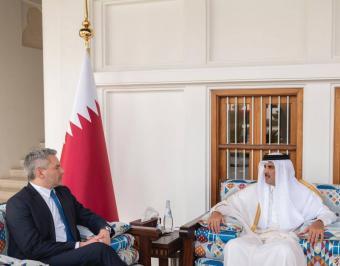 Qatari Emir Tamim met on Monday (7/3/2022) with the Austrian Federal Chancellor Karl Nehammer and his accompanying delegation at the Qatari Amiri Diwan.